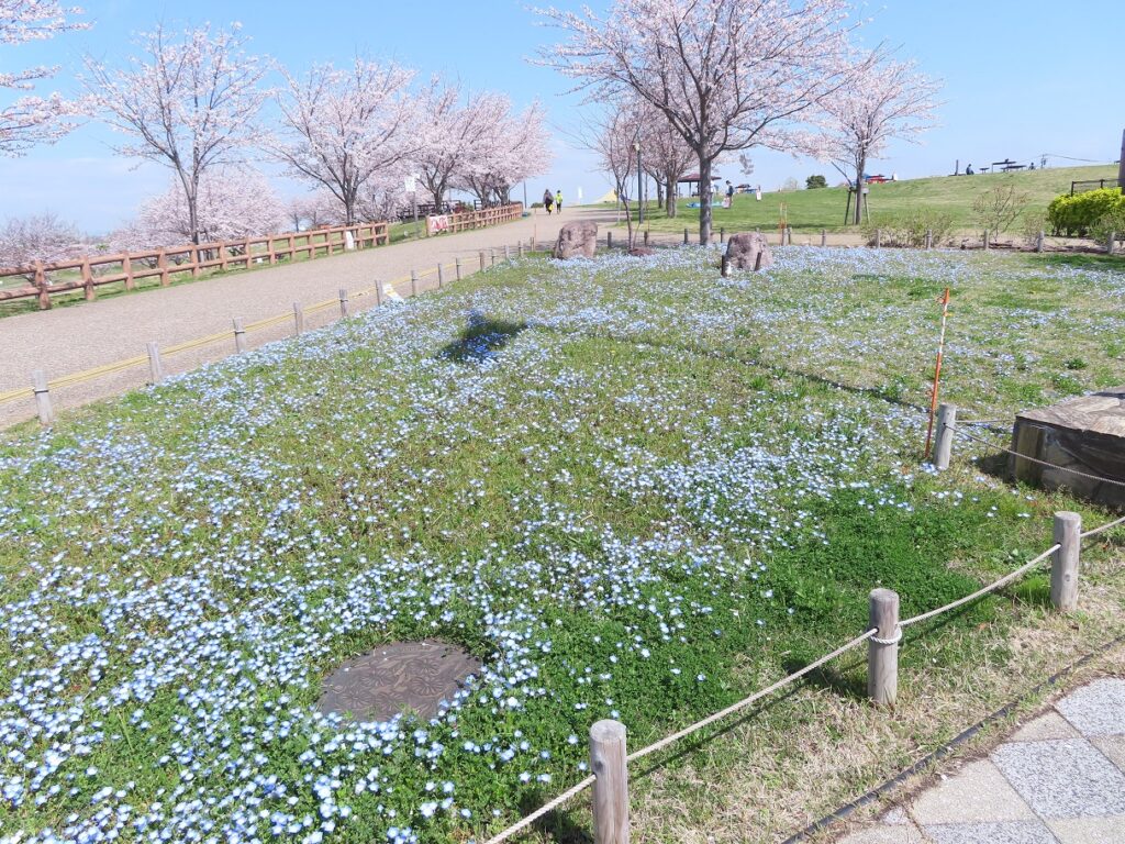 仲良しプラザ前のネモフィラはどうでしょうか。