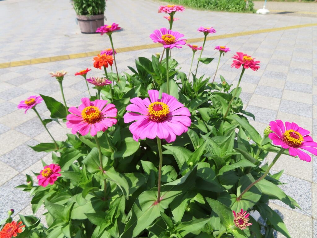 こちらはプランターで育てているジニア。暑い中、よく咲いてくれました。