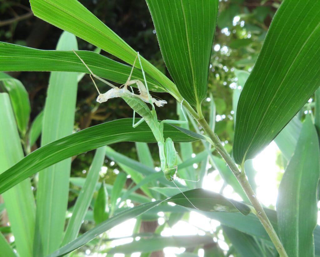 脱皮したばかりのカマキリと目が合いました。珍しい。