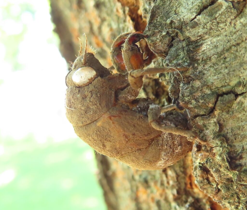 これはニイニイゼミの抜け殻。目から光がほとばしります。ビカーッ!