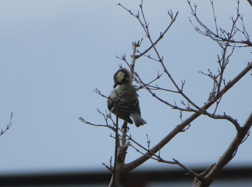 カエデの上ではシジュウカラが羽の手入れをしていました。