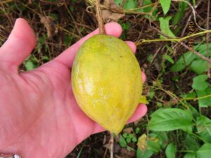 多目的リンクにキカラスウリという、大きな実をつける草を見つけました。