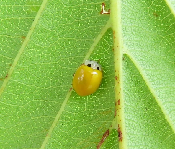 どこにいるのかはっきりしませんが、時々みかけるテントウムシです。