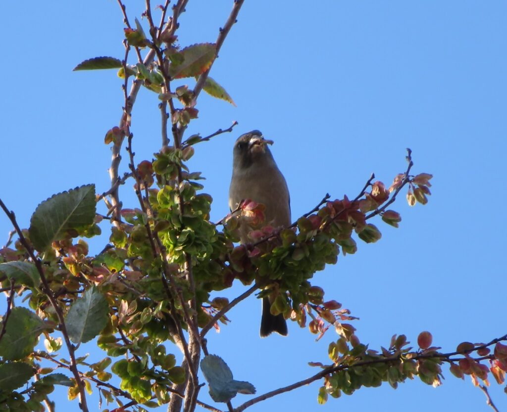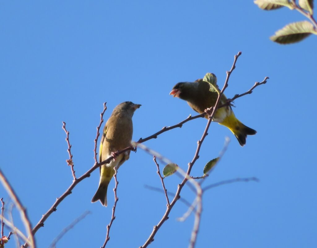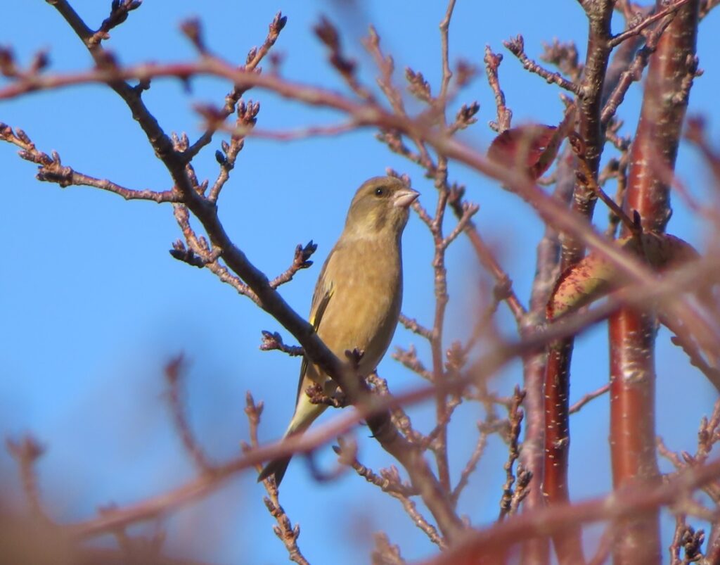 木から葉っぱがなくなると、公園にカワラヒワがやってきます。