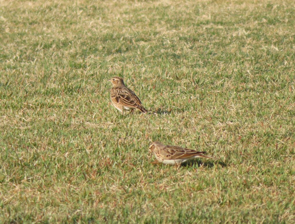 修景池では、ヒバリが草の種をつついていることが多いです。のどかな風景。