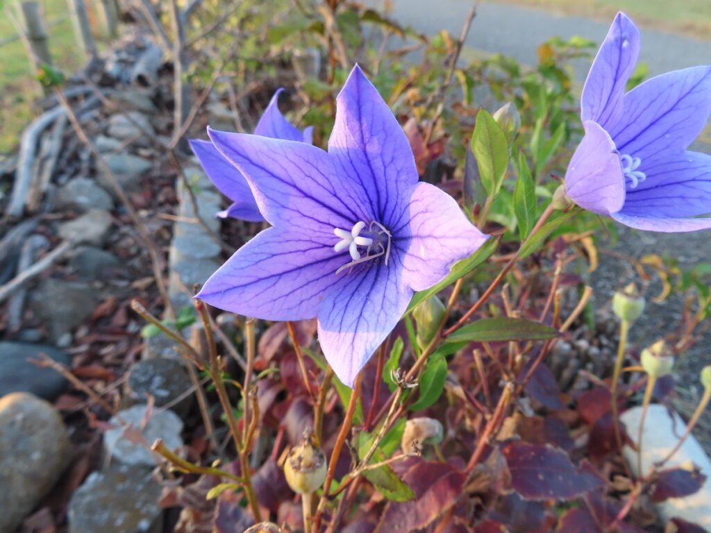 プラザの前に植わっているキキョウが、再び花を咲かせてくれました。