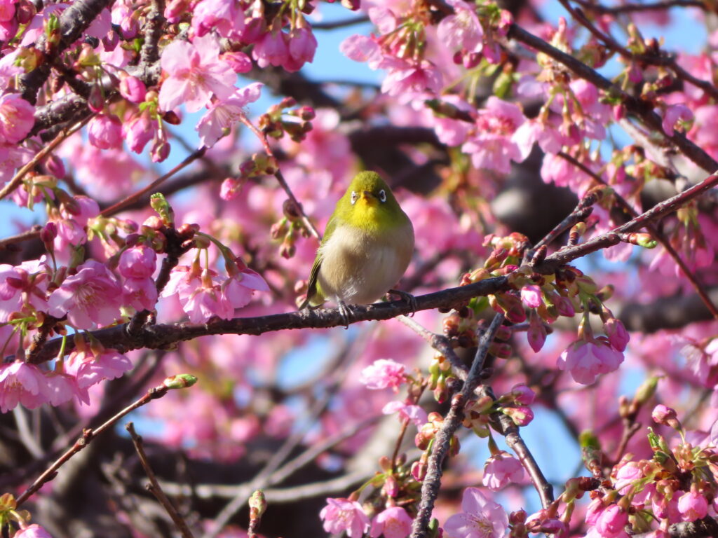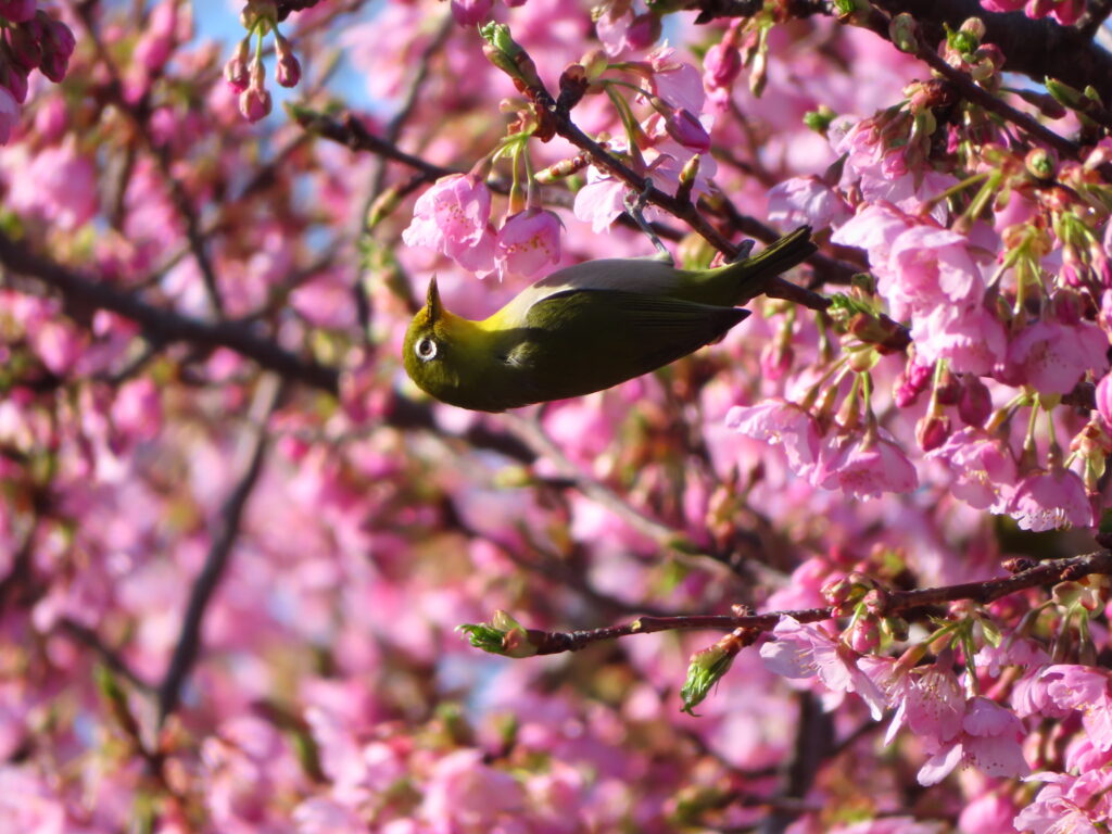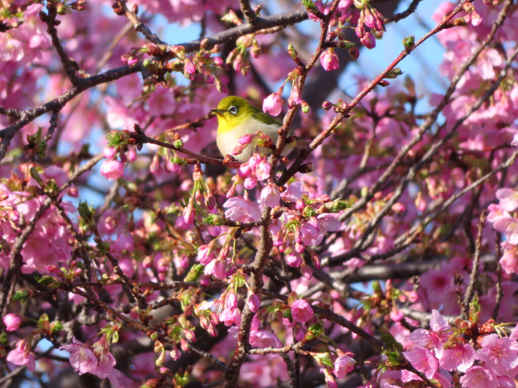 河津桜、来年も咲いてほしい。メジロマシマシで。