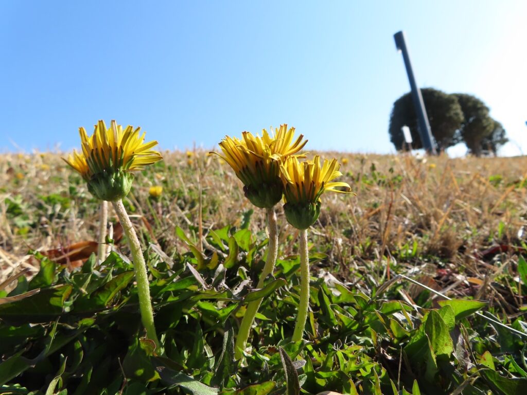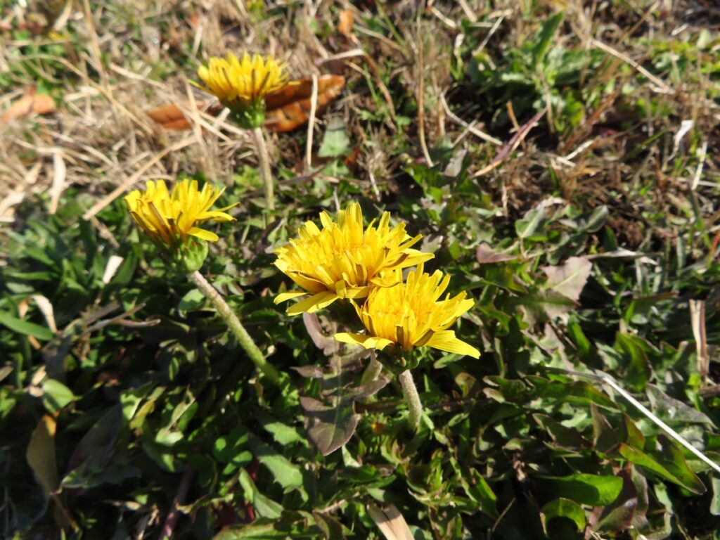芝生グラウンドの北側にある土手では、タンポポが花盛り!
