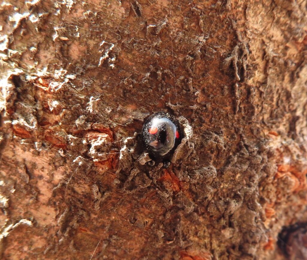 ソメイヨシノには、ヒメアカボシテントウが張り付いていました。