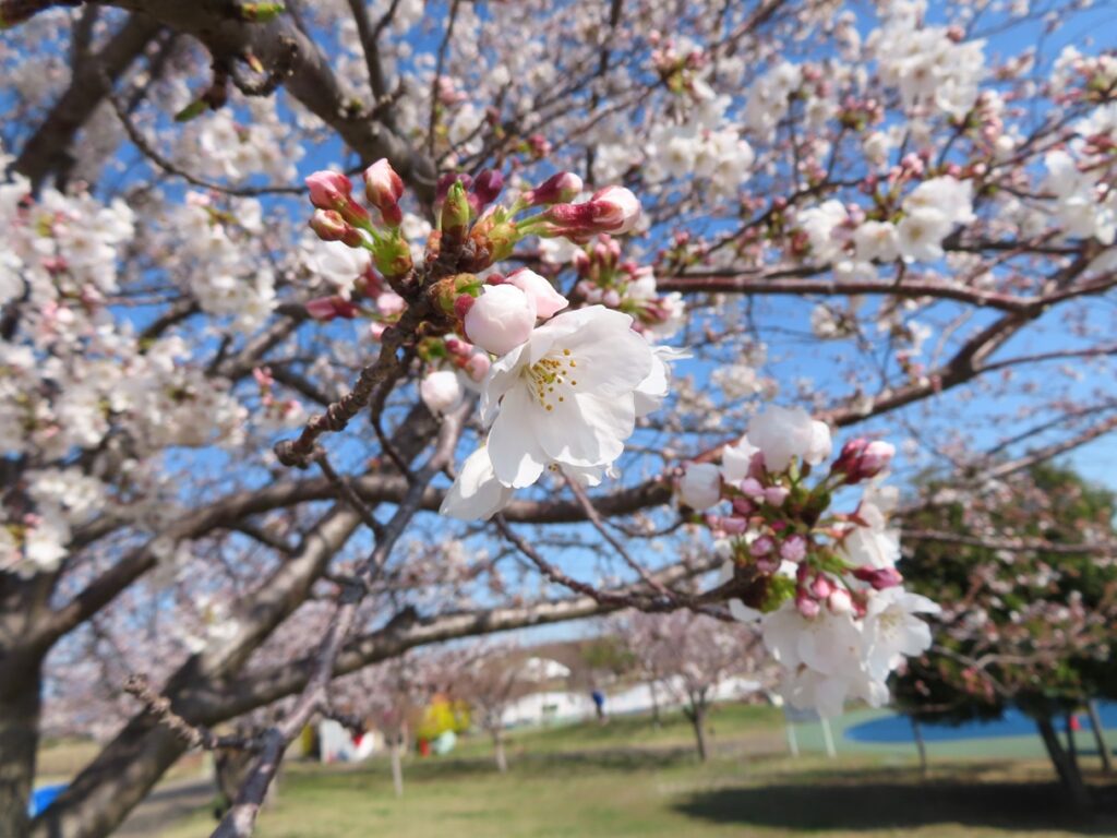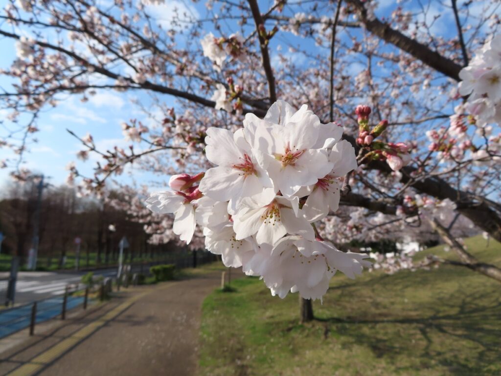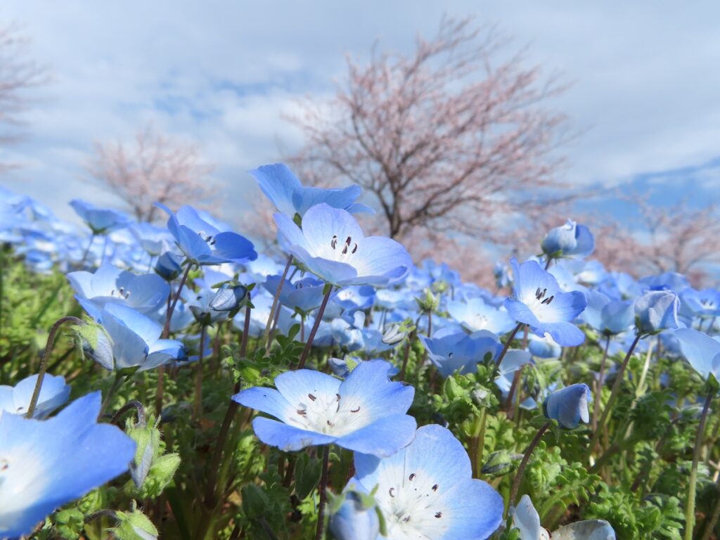 特に仲良しプラザ前のソメイヨシノと、ネモフィラの組み合わせは