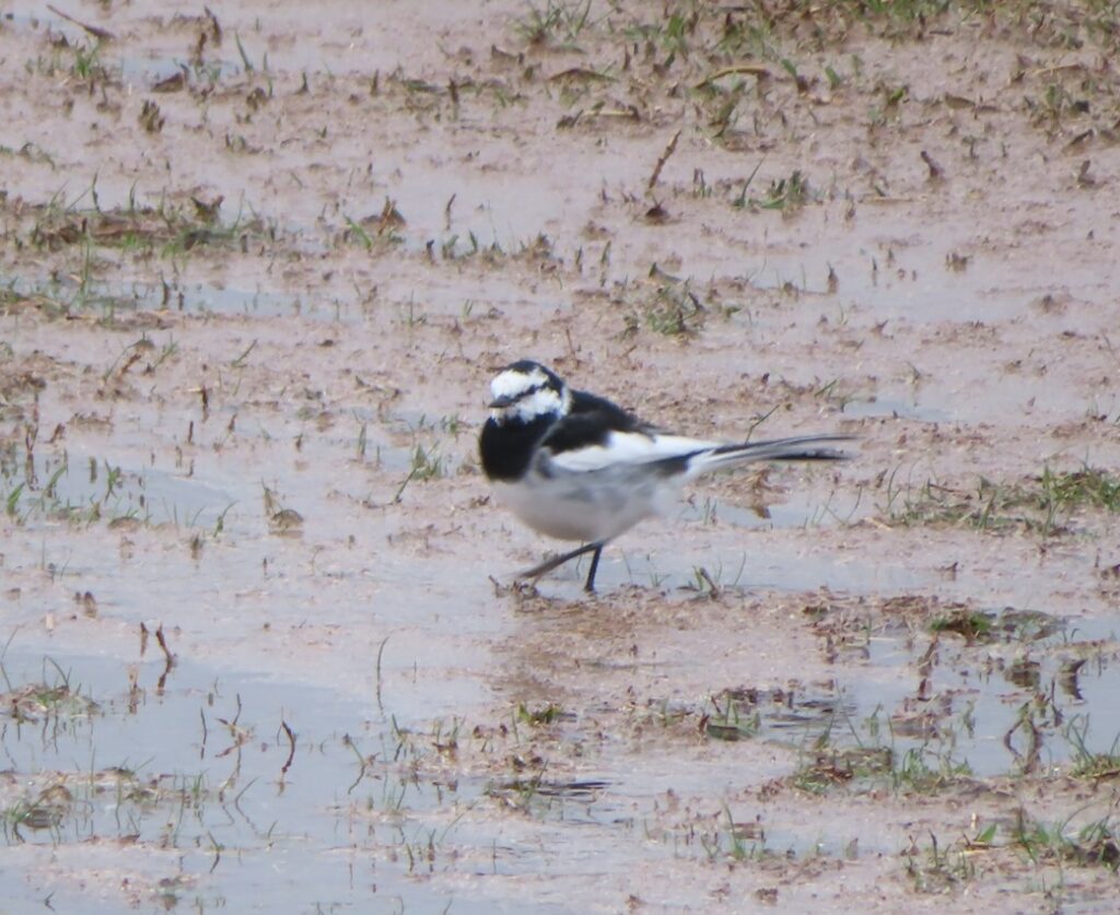 雨上がりの修景池でジャブジャブしていたハクセキレイの写真で