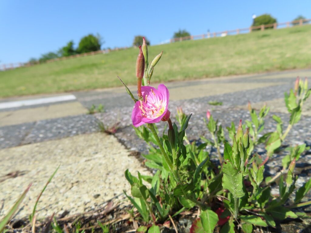 通路脇から力強く伸びるのは、ユウゲショウという花でした。