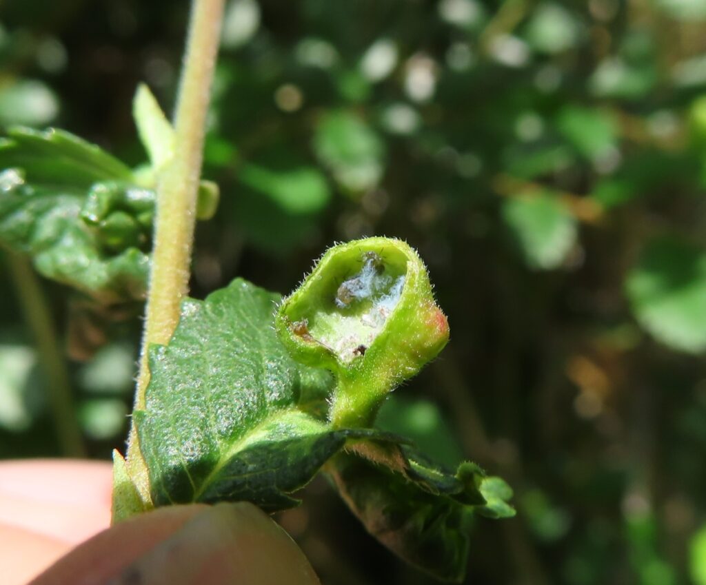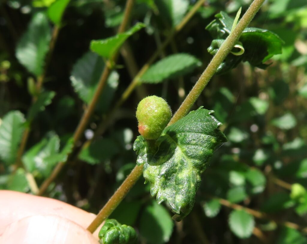 この葉っぱの丸いコブも、虫に寄生されて変形したものです。