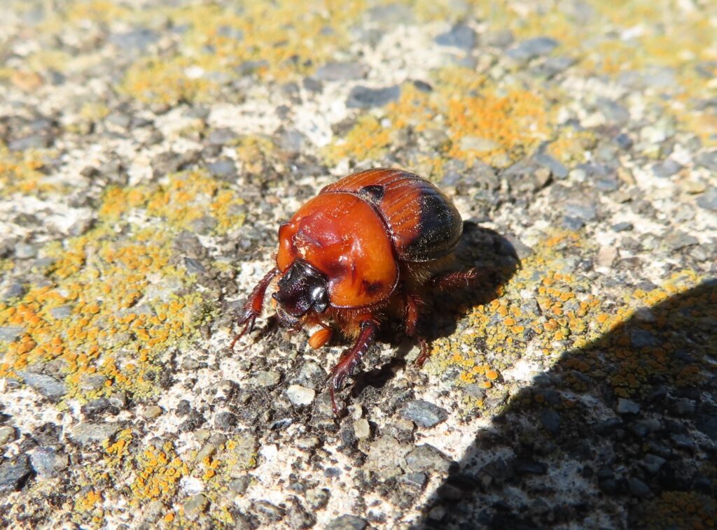 レアな昆虫ムネアカセンチコガネも見つけました。オレンジ色でレア度が際立つ。