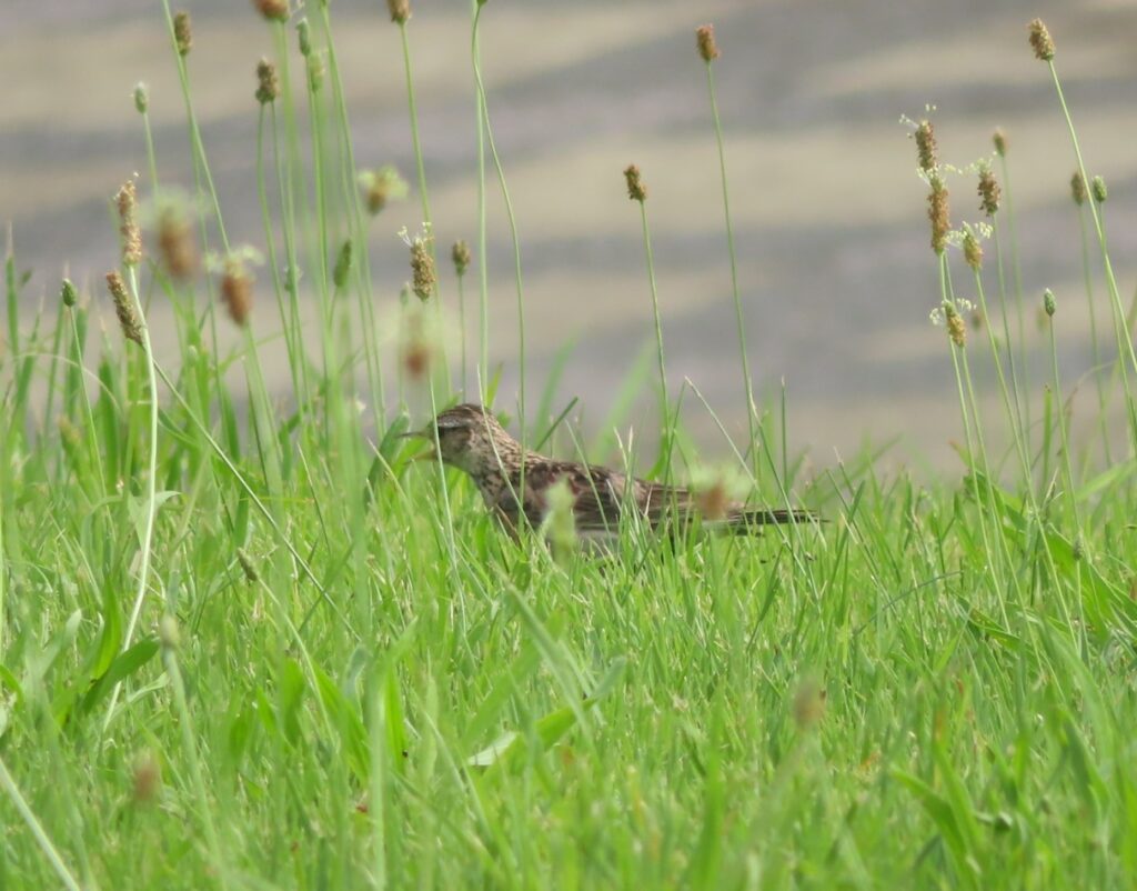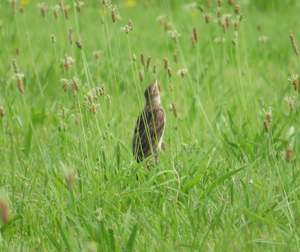 近くの草むらを歩くヒバリも口を開けて放熱していました。