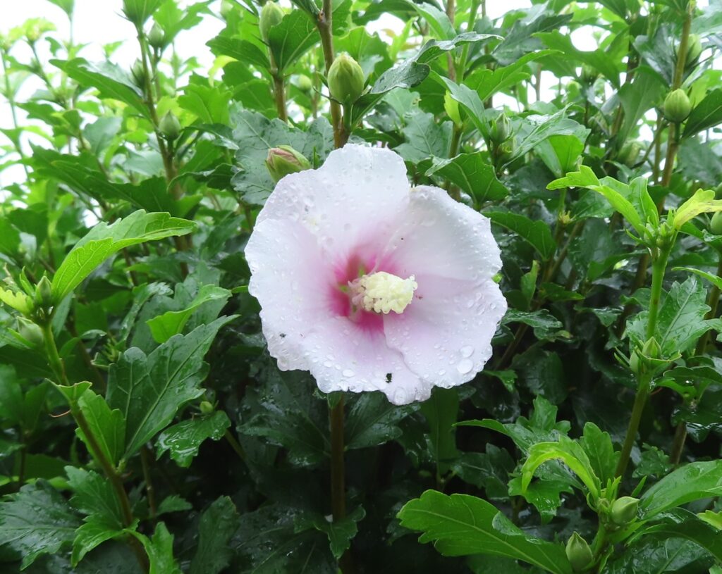 ムクゲと申します。多目的リンクやバーベキュー広場の近くなどで咲いています。