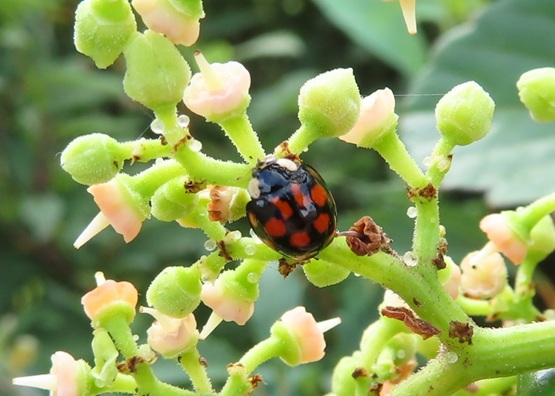 昆虫があつまる花ですので、観察しているとテントウムシやゾウムシ、