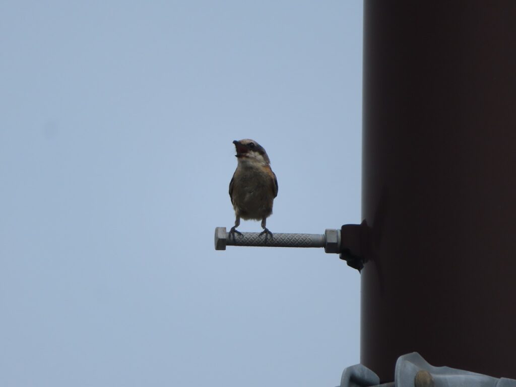 勇ましい鳴き声です。一般的にモズは秋のイメージがある鳥ですが