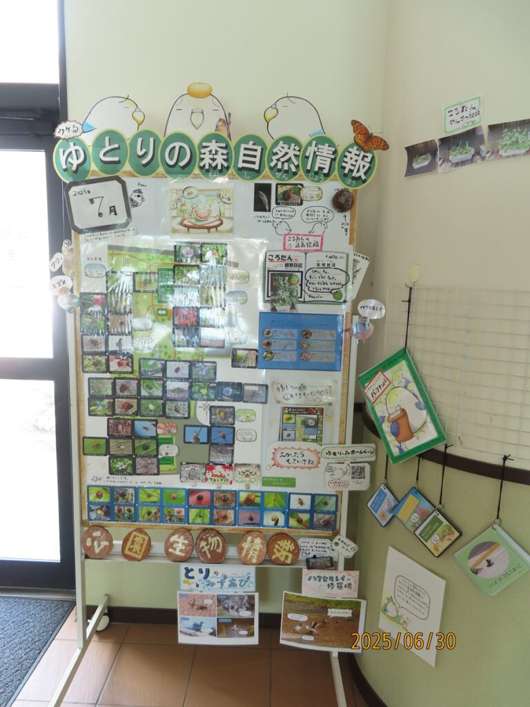 『ゆとりの森自然情報』は、公園内で見つけた生き物を紹介する掲示板です。
