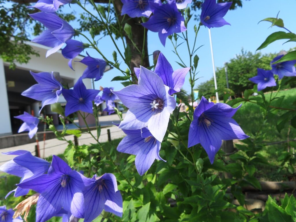 仲良しプラザ前では、キキョウが猛烈に咲いています。