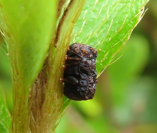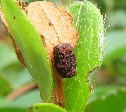 このツツジコブハムシ、虫のフンに擬態しています。そのせいか全然動きません。