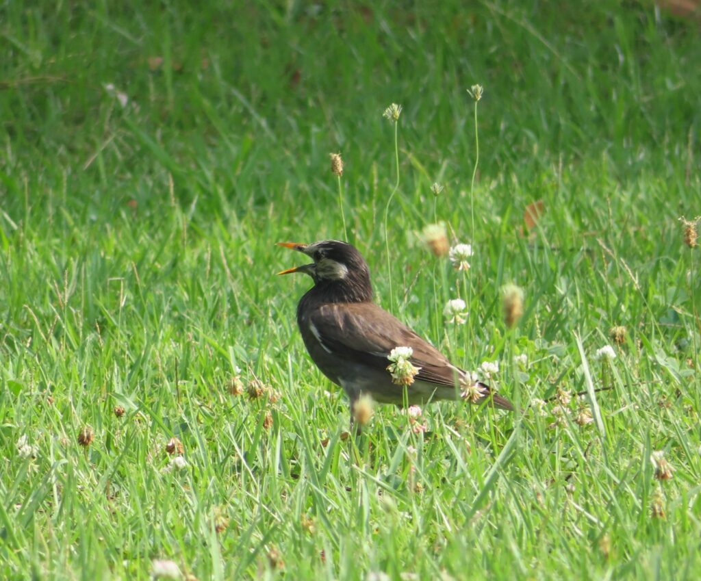虫をついばむムクドリも、口を開けて暑そうです。ハァハァ。