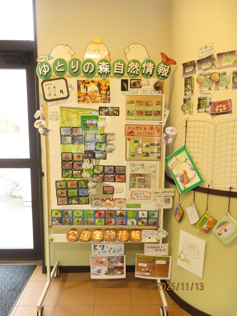 『ゆとりの森自然情報』は、公園内で見つけた生き物を紹介する掲示板です。