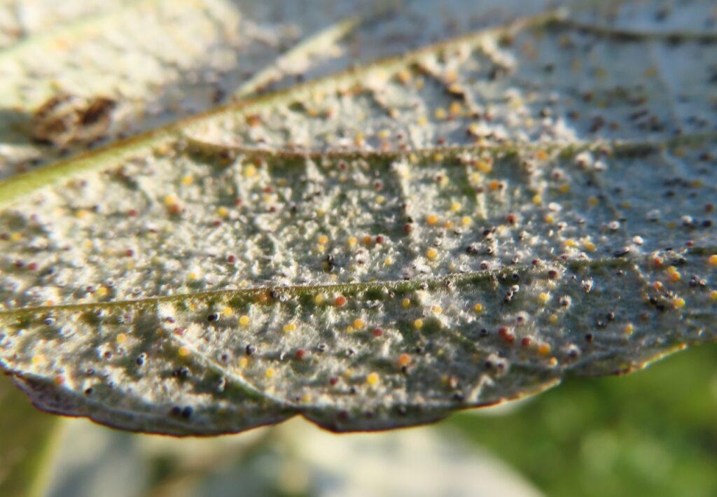 これは、ウドンコ病菌という、植物に取りつく、ごくふつうのカビです。