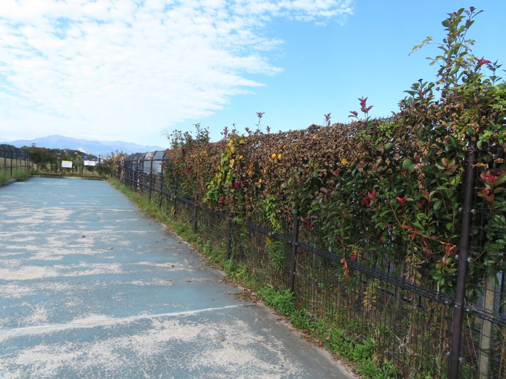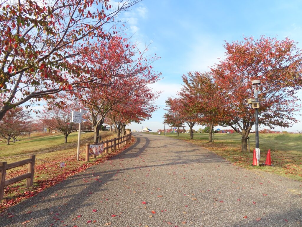 仲良しプラザ~ふわふわドーム方面へ向かう道も、あざやかに色づきました。