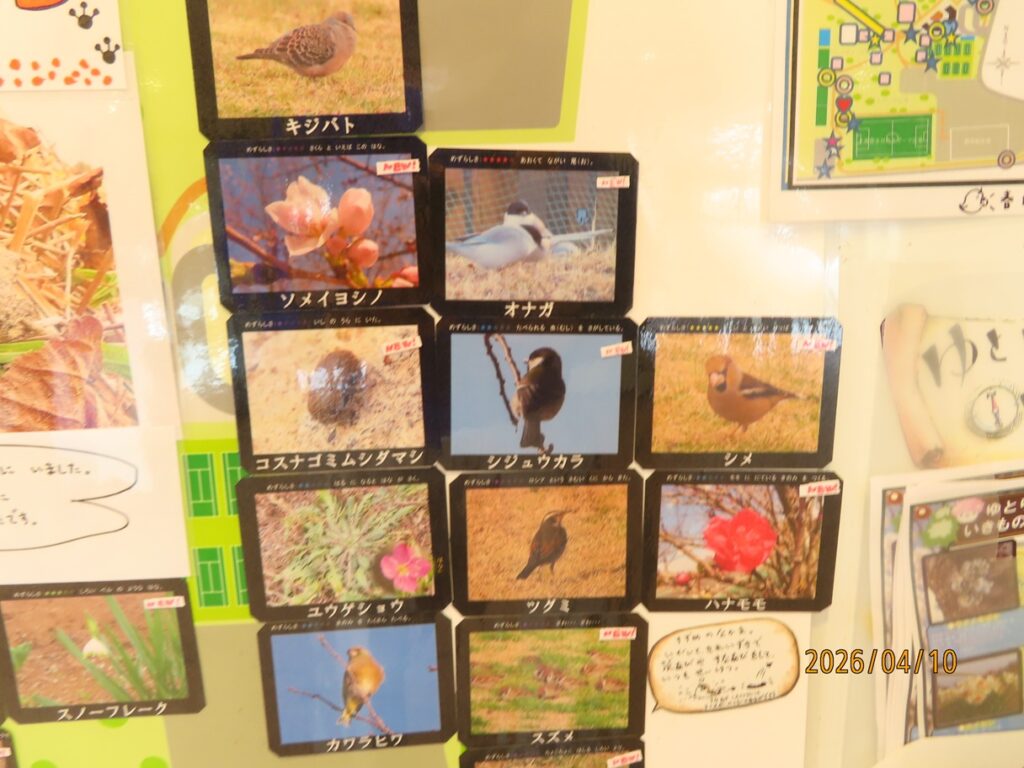 『ゆとりの森自然情報』は、公園内で見つけた生き物を紹介する掲示板です。