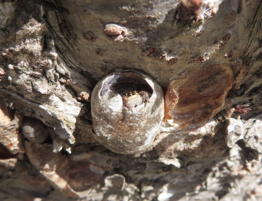 ひょこっと顔を出すハエトリグモも見つけました。
