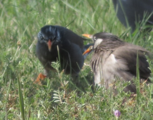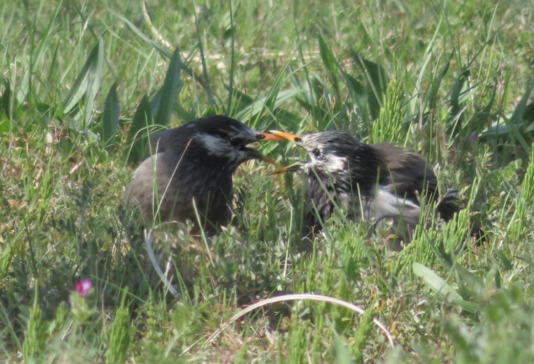 別の場所ではムクドリが何やらクチバシを広げてバチバチ言わせてました