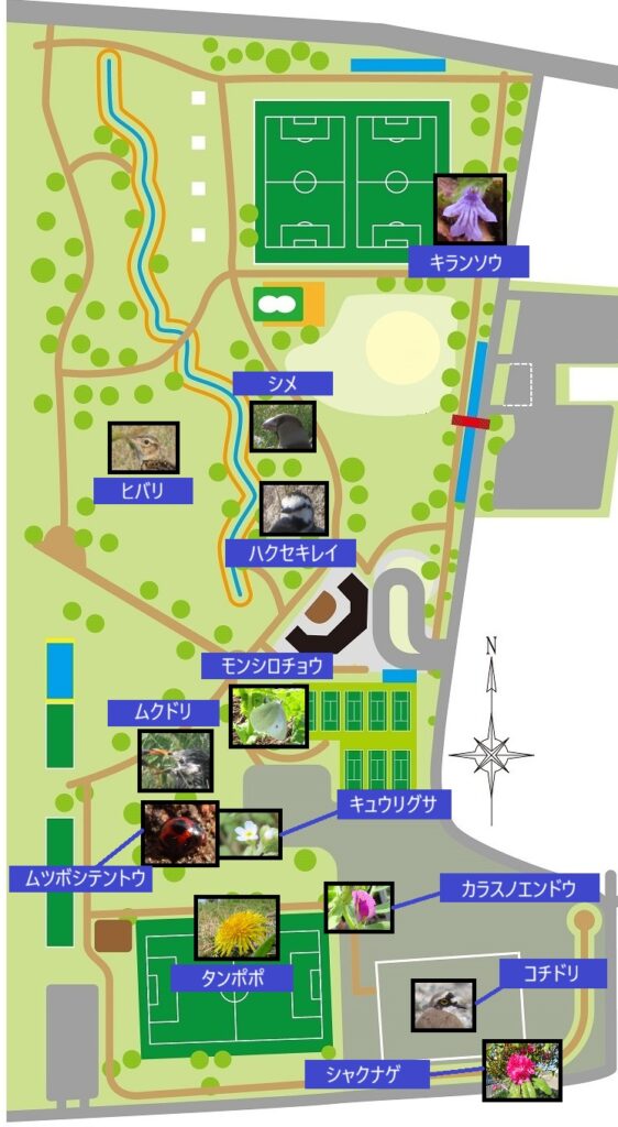 今回生き物を見つけた場所を、地図に記してみました。