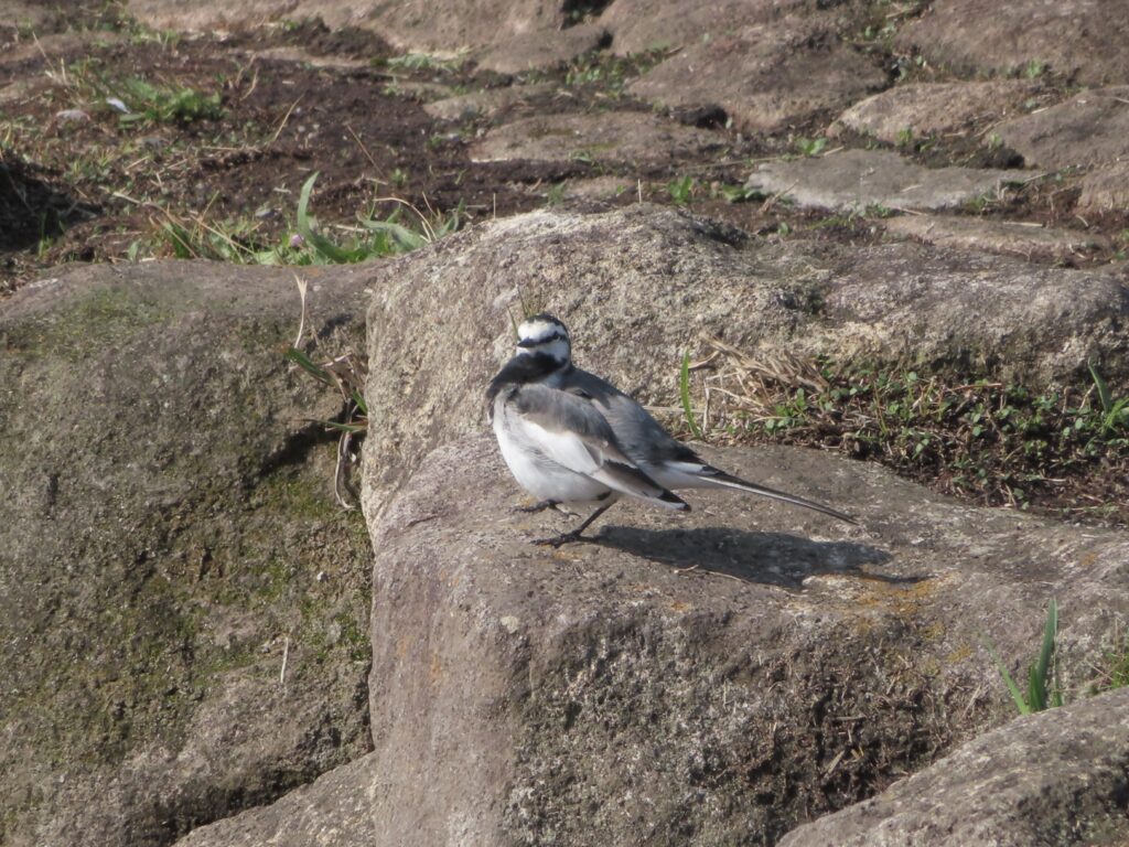 修景池の小川では、ハクセキレイが体のお掃除中。
