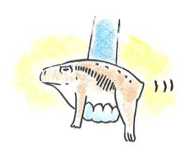 意外とおとなしい。手足をブラブラ、物陰へ。