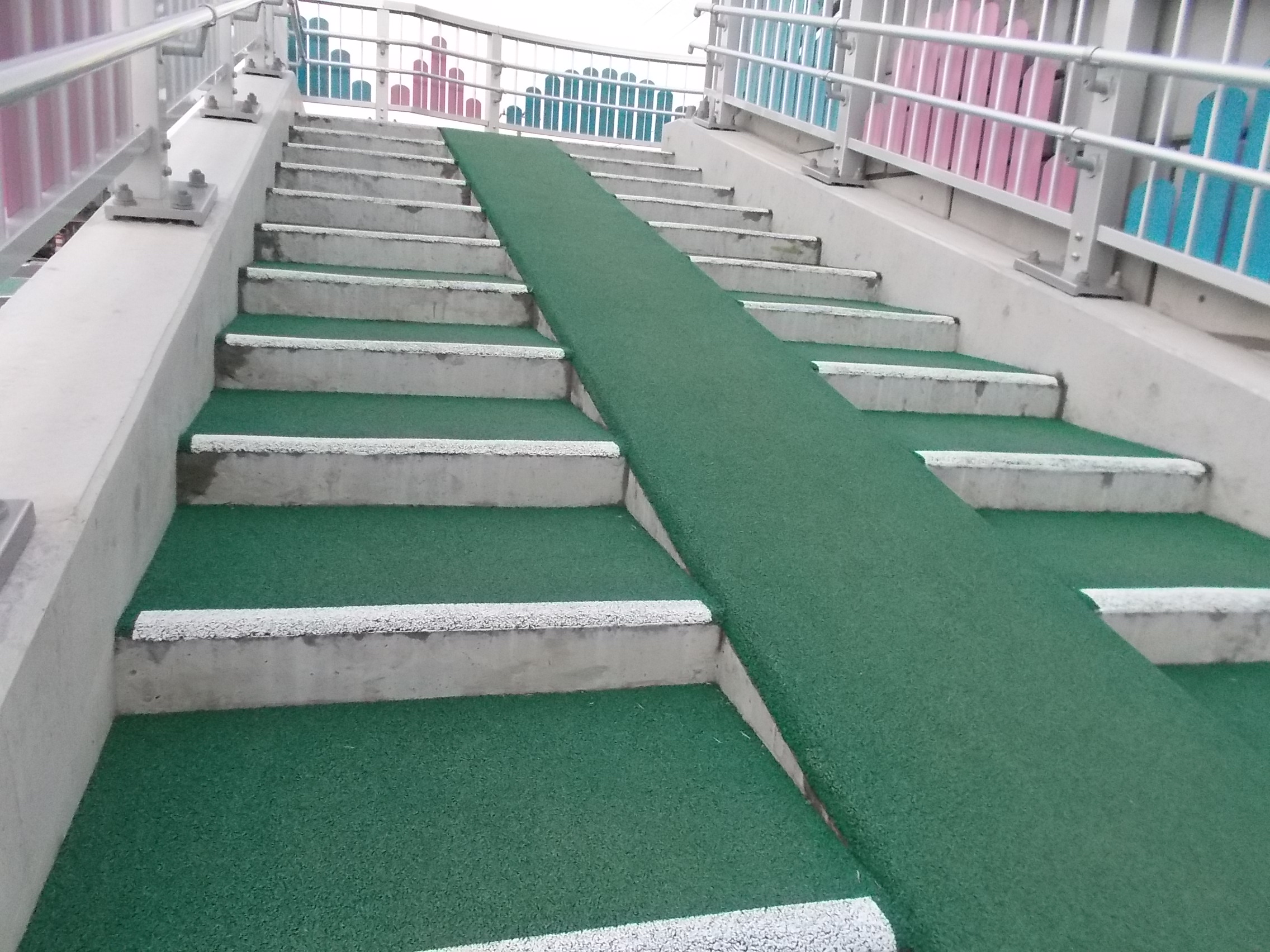 階段はスロープがついていてさらにゴムチップ舗装なので安心ですね。
