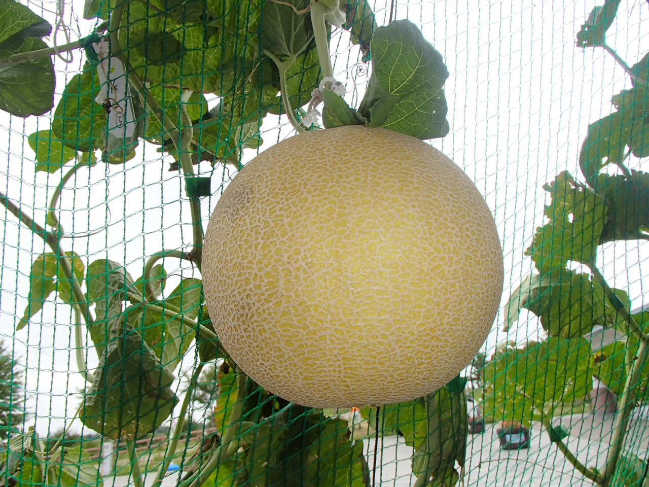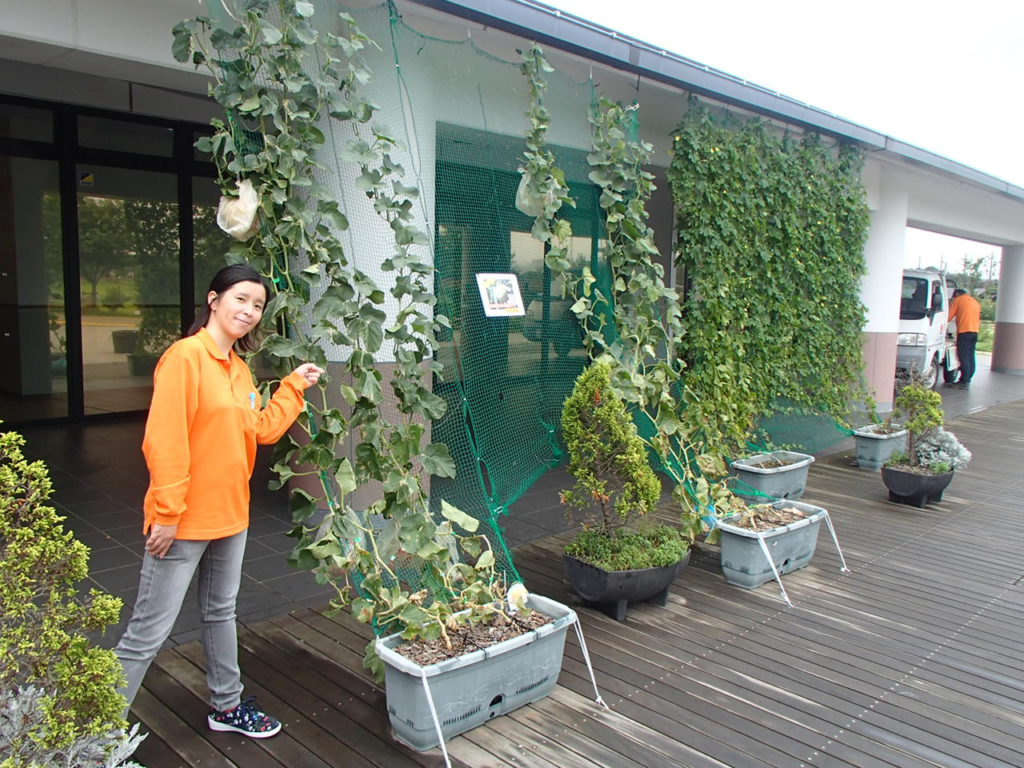 グリーンカーテンで育ったミニメロン(ころたん)を、スタッフとじゃんけんをして勝ち抜いた方に、プレゼントします!