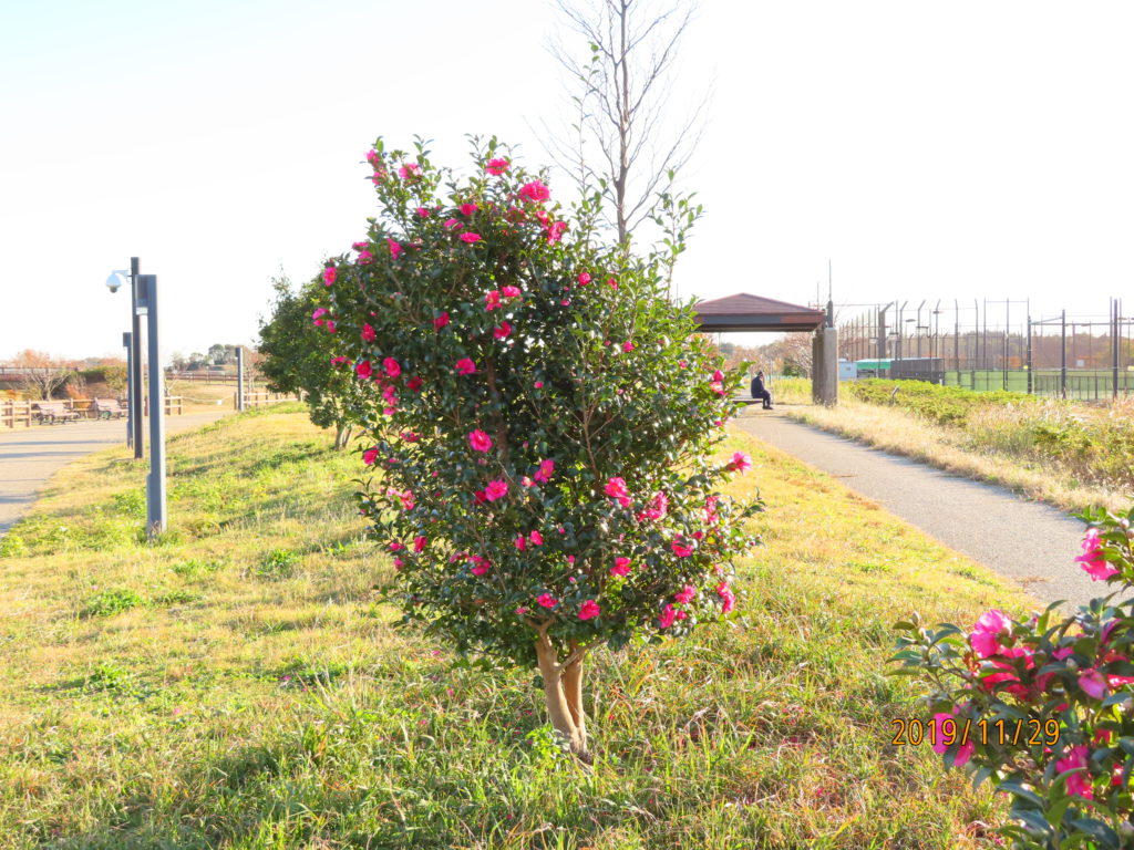 芝生グラウンドの東側で咲いています。