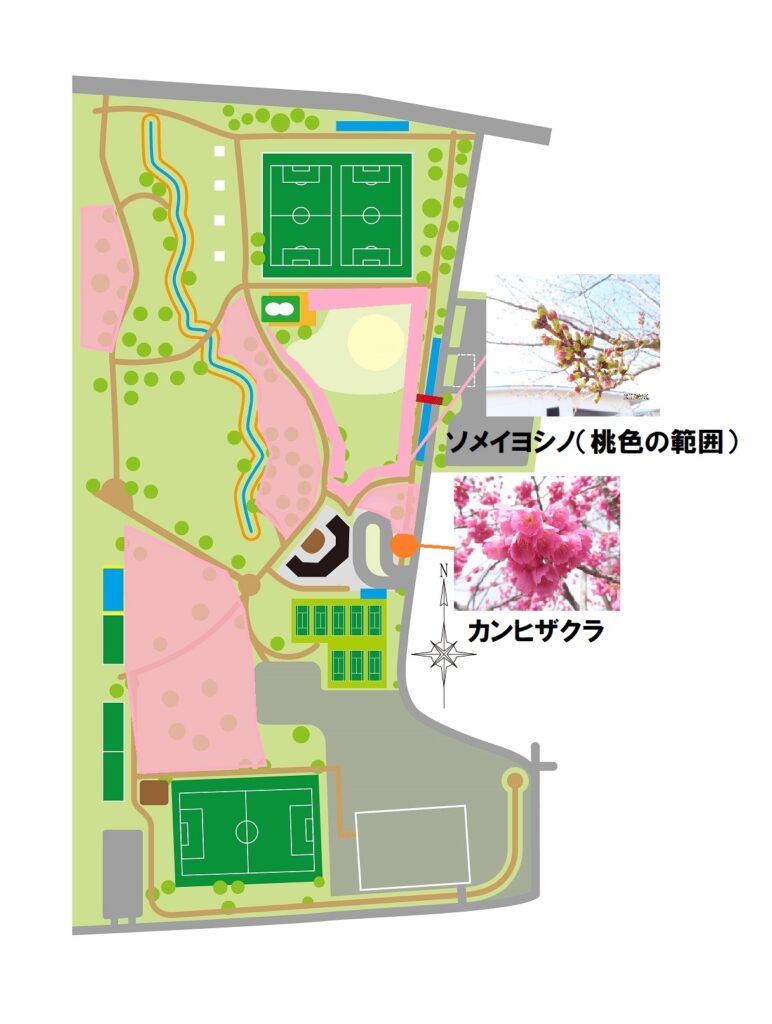 ソメイヨシノは、ゆとりの森の中に沢山あります(桃色で示した範囲)。