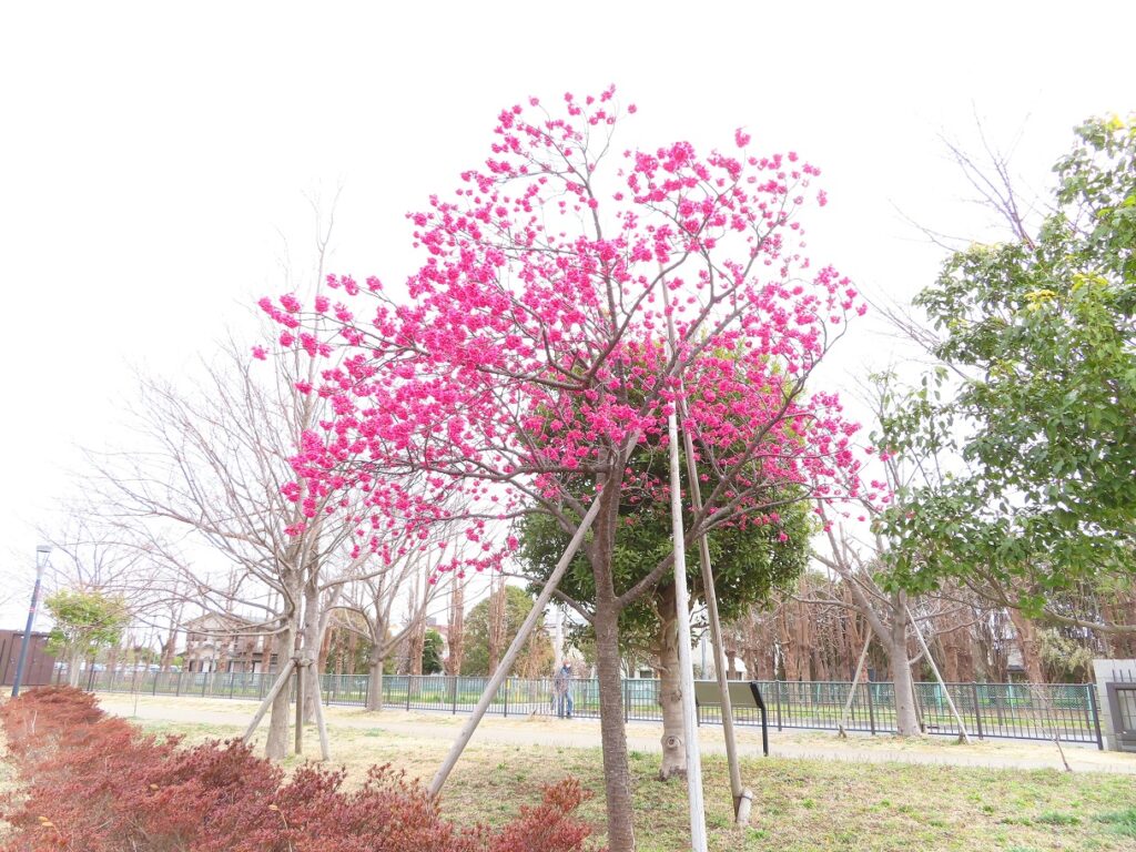 カンヒザクラは、仲良しプラザ前ロータリーにあります。