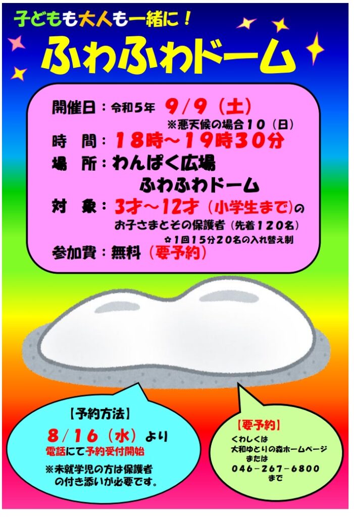 大和ゆとりの森で大人気の遊具「ふわふわドーム」のイベントを開催します!