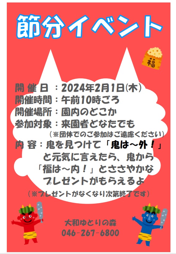 元気に言えたら「福は~内!」と鬼からささやかな【福】をさしあげます。