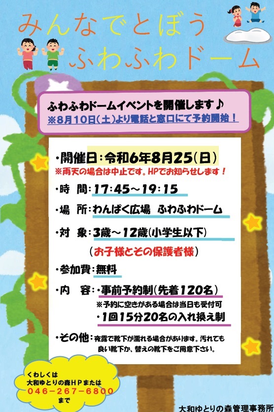 わんぱく広場による「みんなでとぼう ふわふわドーム」の開催が決定しました。