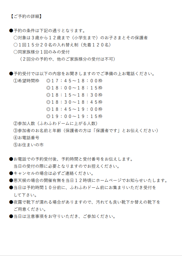 このイベントでは特別に、3歳~小学生までの12歳のお友達も遊ぶ事ができます。更に、保護者の方も一緒にドームに上がることができ、ご家族でイベントを楽しむことができます。