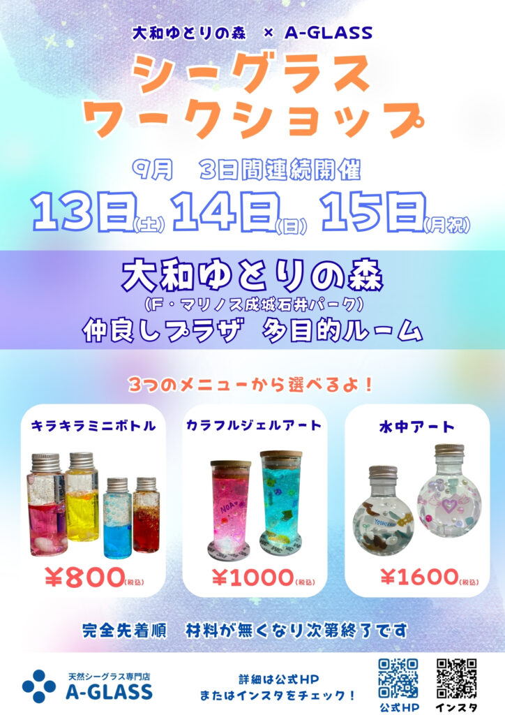 明日からの三連休、ゆとりの森仲良しプラザで、シーグラスのワークショップを開催します♪