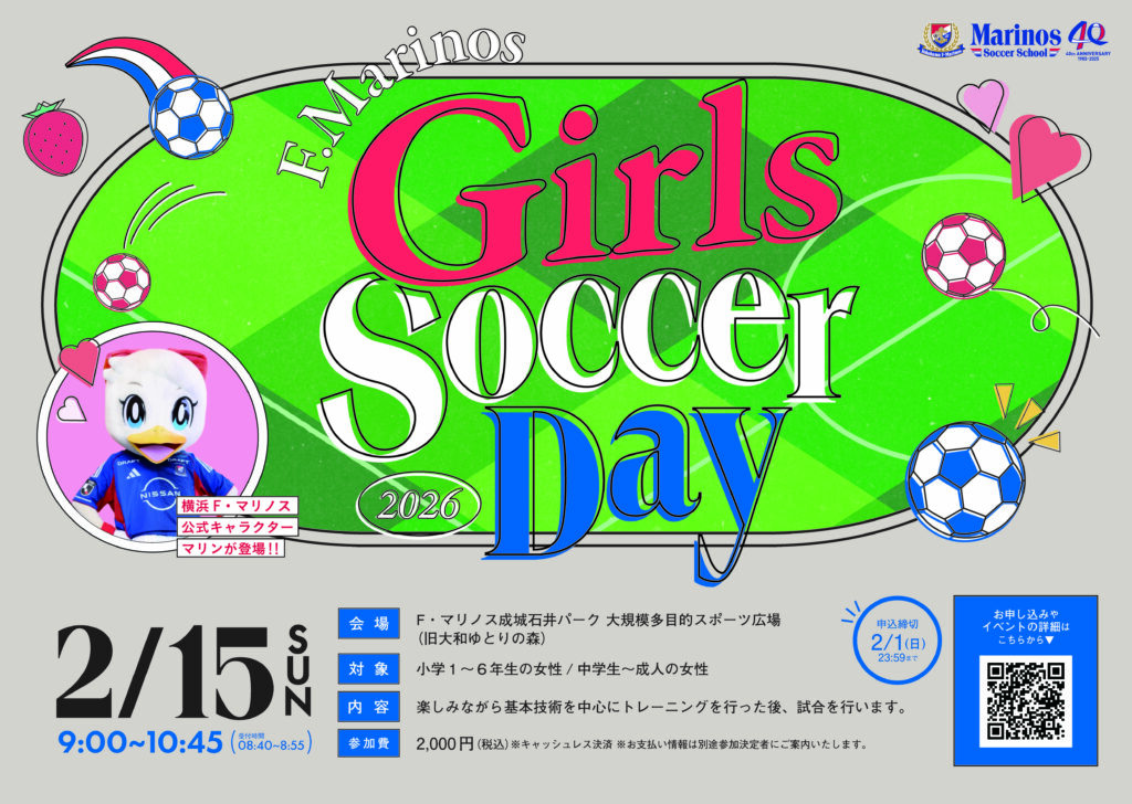 2月15日(日)「女子サッカー交流会」 「女子サッカー交流会」開催のお知らせ。 ※詳細につきましては、下記よりお問い合わせください。 fmsc.info@yokohama.marinos.co.jp 皆様のご参加を、心よりお待ちしております!!