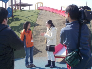 レポーターの東島衣里さんがお越しになり、公園の魅力の紹介や来援されたお客様へのインタビューを生中継で放送いたしました。