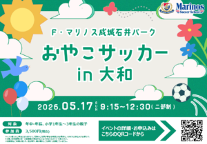 5月17日(日)にF・マリノス成城石井パークにて幼児(年中・年長)から小学3年生を対象とした『おやこサッカー ㏌大和』を開催いたします。