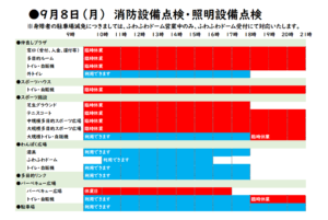 9月8日(月)は、消防設備点検・照明設備点検のため臨時休館とさせていただきます。
