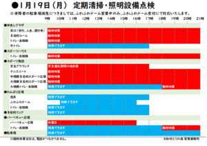 1月19日(月)は、定期清掃・照明設備点検のため臨時休館とさせて頂きます。